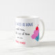 Mugg är designat för dem som njuter av te och kakor. Det har ord, med blå versaler: "ALLT DU BEHÖVER ÄR KÄRLEK". Under, i mindre svarta bokstäver, är "... och te, en bra kopp av te ... med kaka". Det är dekorerat med en kopp av te och en yummin cupkaka. Du kan anpassa det med ditt namn i rött brev.