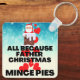 I Niche och The store of the "All For Pappa jul Kärlek Mince Paj" är utformningen av nyckelkedjan "All For Mince" en perfekt för alla dem som tror på Pappa jul och kärlek att äta mince paj under festsäsongen. Pappa jul hjublar ner skorsten för ännu ett möss paj som barnen har lämnat ut för honom.