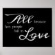 Den här vackra tryckningen är en minnesvärd gåva för att fira gravid eller nyfödd bebis. Det står: "Allt för att två människor föll i kärlek."
