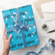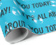 Genomskinliga bubblor flytande på neonblått och turkogradientbakgrund med texten "Det handlar om dig idag". Text kan ändras.