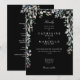 En elegant vildblomma akvarell blomsterbröllopsinbjudan med chic vit typografi på en stilfull svart bakgrund. Med all din speciella bröllopsdagsinformation på baksidan, inklusive din RSVP, boende och ytterligare detaljer. Designad av Thisisnotme©