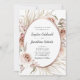 Allt i en Boho Rosa Blommigt Ro Guld Oval Torkad Handflatan Lämnar bröllopsinbjudan... Vår bröllopsinbjudan "Allt i ett"-blommigt har en arrangemang av vackert rosa ros, eukalyptus och torkat handflatan löv runt en faux ro-guld-metallfolie av ram som skapar en elegant gräns för inbjudningstexten i. Baksidan av inbjudan innehåller all information som du normalt skulle se på separata kort i bröllop-paketet. Den här moderna bröllopsinbjudan i stil var designad för att vara både elegants- och budgetmedveten.. för att inte tala om tidsbesparing. På baksidan finns det också en QR-kodgrafikmall som du kan ersätta med din egen kod (eller ta bort om du inte tänker använda använda ett). All exempeltext kan enkelt revideras med egen information om anpassningsmallen.