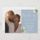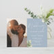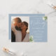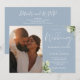 Denna eleganta dammiga blå gröna blomsterbröllopsinbjudan kan anpassas med ditt speciella foto och information i chic typografi med all din speciella bröllopsdagsinformation på baksidan, inklusive din RSVP, boende och ytterligare detaljer. Designad av Thisisnotme