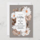 Bjud in dina vänner och nära och kära till din bröllopsfest med denna allt-i-ett höstblommiga bröllopsinbjudan med en grå ram med jordtonade petunior och vita prästkragar. Denna inbjudan är perfekt för en trädgårdsbröllop. Designad för det priskänsliga paret, innehåller denna inbjudan mottagningsinformationen, detaljer om RSVP-förfrågan och all annan information du önskar inkludera på baksidan av inbjudan, vilket sparar dig kostnaden för att köpa extra porto och bröllopspapper.