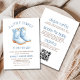 Sätt fart på en riktigt rolig stund med denna allt-i-ett inbjudan till baby shower för en liten cowboy! Med charmiga västerndetaljer i mjuka blå nyanser, innehåller denna inbjudan avrivbara RSVP- eller presentregisterdetaljer - vilket gör den lika praktisk som den är bedårande. Perfekt för en baby shower för pojke med en rustik eller cowboy-tema.