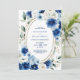 Allt i en Oval Blue Blommigt Bröllop Inbjudningar