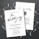 Allt i ett QR Code OSA Trendig Modern Black Calligraphy Script Bröllop Bouding Bourding... Vårt trendig minimalistiska "front and back"-inbjudan för svart och vitt bröllop har ett modernt kalligrafi-skript kombinerat med serif och sans serif-text för en enkel och chic bröllopsinbjudan. Baksidan av inbjudan visningar även bröllop webbplats QR-kod och webbplatsens egen URL, vilket gör att dina inbjudna lätt kan OSA online och visa alla uppgifter som normalt skickas i ett bröllop-paket. Den här moderna bröllopsinbjudan från stil var designad att vara både trendig- och budgetmedveten.. och tidsbesparande. Exemplet QR-kodgrafik och all exempeltext (bortsett från det grafiska kalligrafin inslag) kan enkelt revideras med egna uppgifter om anpassningsmallen.