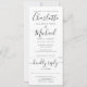 En allt-i-ett svart-vit bröllopsinbjudan med modernt underskriftmanus namn och elegant typografi. Inbjudan inkluderar ett RSVP-kort som kan klippas av och gästinformation. Designad av Thisisnotme