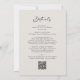 Allt i ett Trendig Modern Black Calligraphy Script Elegant Eggshell Bröllopsinbjudan... Vårt trendig "front and back" svart på äggskals bröllopsinbjudan har chic med modernt kalligrafi-skript kombinerat med serif och sans serif-text för en enkel klassisk bröllopsinbjudning. Baksidan av inbjudan innehåller all information som du normalt skulle se på separata kort i bröllop-paketet. Den här moderna bröllopsinbjudan från stil var designad för att vara både trendig- och budgetmedveten.. för att inte nämna tidsbesparing. På baksidan finns det också en QR-kodgrafiklamall som du kan ersätta genom att skriva in URL:en för webbplatsen bröllop (eller ta bort om du inte tänker använda en..). ÄVEN - glöm inte att ta bort texten som hänvisar till QR-kodinformationen.) All exempeltext (bortsett från den grafiska kalligrafin inslag) kan enkelt ändras med egna uppgifter om anpassningsmallen.