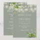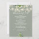 Denna eleganta eukalyptusgrönska botaniska strängljus sälggröna bröllopsinbjudan kan anpassas med din information i chic typografi med all din speciella bröllopsdagsinformation på baksidan, inklusive din RSVP, boende och ytterligare detaljer. Designad av Thisisnotme