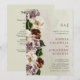 Allt-i-ett-monogram med stämningsfullt blomstertryck i oljemålning, bröllopsinbjudan... Vår "Allt-i-ett" bröllopsinbjudan med stämningsfullt blomstertryck har en elegant kant med krämfärgade, vinröda och mauvefärgade blommor bredvid din inbjudantext... allt på en linnetvit oljemålningbakgrund. Baksidan av kortet innehåller alla detaljer som vanligtvis syns på separata kort i bröllopspaketet. Denna moderna allt-i-ett-bröllopsinbjudan designades för att vara både elegant och budgetvänlig... för att inte tala om tidsbesparande. På baksidan finns också en QR-kodgrafisk mall som du kan ersätta med din egen kod (eller ta bort om du inte planerar att använda en). All exempel