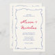 Den här fantastiska bröllopsinbjudan är en underbar blandning av stollig och vibrancy. Den handritade vågigt gräns tillför en aning spelbarhet, medan monogrammet i elegant-skript ger en personlig beröring. Kombinationen av färg kommer säkert att fånga gästernas öga och ange tonen för ett glatt firande.