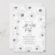 Inbjudan till fest i vitt med vackra vita blommor perfekt för födelsedagsfester och baby shower.