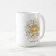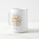 Söt mugg har en lila-, grönt- och guld vattenfärgad blomkrans med citatet "Allt jag behöver är lite kaffe och en stor Jesus" och är personlig med ditt namn.