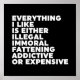 Allt jag tycker om är antingen olaglig, omoralisk, gödslad, påfallande eller dyrbar svartvit citat som säger underbart typografi