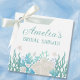 Lägg till en touch av oceanisk elegans till dina bröllopsfestgåvor med våra personliga "All I Sea is Love" -presentkort. Perfekta för en strandtematisk fest, har dessa fantastiska kort livfulla koraller, ömtåliga snäckor och charmiga sjöstjärnor i lugnande havsblå och turkos nyanser. Anpassa varje kort med den blivande brudens namn för att skapa en unik souvenir som gästerna kommer att minnas. Ideala för att knytas fast på presentpåsar, burkar eller lådor, kompletterar dessa presentkort sömlöst ditt havstema samtidigt som de lägger till en personlig touch. Gör vågor på din bröllopsfest med dessa utsökta och minnesvärda presentkort. Beställ nu för att säkerställa att din speciella dag blir oförglömlig!