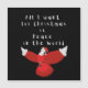 Fredspacifismens förevändning i helgdag i rött och vitt. Text: "Allt jag vill ha till jul är fred i världen."
