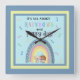 Den här vackra klockan har en modern regnbåge med två vita valpar hundar under den. På den översta raden i regnbågen finns det små valparavtryck som klättrar upp uppåt på båda sidor och leder till ett hjärta överst. Typografi säger att det handlar om Rainbows och Puppy Hundar. Breven i "regnbågar" utförs i olika färg och det finns olika hund i färgaden som är spridda över varandra. Bakgrunden är en blå blek himlar med mörkblå och gult gräns.