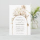 Den här allt-i-ett-bröllopsinbjudan innehåller färgade vattenfärgproteas, vita orkidéer, torrt pampasgräs, vita anrikningar med en arch ram och bröllop och OSA QR-kod på baksidan. Om du vill ha en mer avancerad anpassning av den här designen klickar du på länken "anpassa ytterligare". Matchande objekt är också tillgängliga.