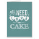 Designen läser "alla som du behöver är kärlek och tårtan". Det är en rolig gullig design, i en spänna av härligt typsnitt. Det är en stilfull underbar gåva för någon som älskar tårtor eller bakar.