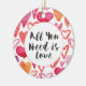 Allt som du behöver, är prydnaden för kärlekhjärtajul med vattenfärghjärtor