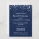 Modern och elegant med blå bakgrund och silver-stjärnor. Du kan enkelt anpassa texten för valfritt tillfälle. Se mer på zazzle.com/GlitterInvitations