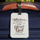 Tidlös vers ”Vad ni än gör, gör allt för Guds ära – 1 Korintierbrevet 10:31” omgiven av mjuka accenter. Få din bagage att sticka ut med denna vackra kristna bagagelapp.