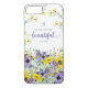 Celltelefonfodral med underbar blommigt lila och gult vattenfärg bilder som omger skript från Ecclesiastes 3:11: "Han har gjort allting vackert på sin tid." Designad av enbart skriptning; inslag från Hungrig JPEG.