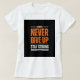 "Aldrig ge up" förkroppsligar ett tänkesätt av obeveklig uthållighet och beslutsamhet, även i ansikte i motgången. Det elak att driva igenom utmaningar och hinder med ett orubbligt engagemang och uthållighet. Denna strategi uppmuntrar till fortsatt fokusering på dina mål, anpassning till bakslag och en kontinuerlig strävan efter framgång, oavsett svårigheter eller misslyckanden under vägen.