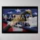 Med en amerikansk flagga, USMC Saber, och vit handske i bakgrunden, har den här bilden orden "Alltid färdigt" och "Semper Fi", förkortat från latinets motto "semper fidelis".