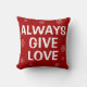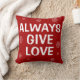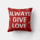 Alltid Ge Kärlek! Röd jul dekorativ kudde med vitt snöflingor och inspirerande ord.