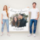 Elegant par fleece-filt med en enkel vit bakgrund, ordspråket "alltid för evigt" som innehåller ett hjärtcentrum, ett foto av lycklig-paret, deras namn och ett betydelsefullt datum.