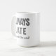 Den enkla svarta och vita kaffet Mugg säger "Alltid sen men värd att vänta". Perfektens gåva till personen i ditt liv som alltid är sen. Utformningen kan överföras till en mängd olika stilar och storlekar i mugg.