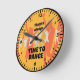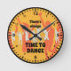 Snyggtens färgfulla TID TILL DANCE Wall Clock, som visar grafik på dans silhouettes. Färg-systemet är gult, orange och grädde av solsken. Lämpligt för ett dynamiskt färg-tema. Texten läser ALLTID TID TILL DANS i svart typografi. Texten är ANPASSADE så att du kan ersätta med text eller namn med liknande längd. Finns i andra färg.
