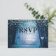 Alltid | Förtrollad Sagoskog | Marinblå Bröllopsinbjudan. Drömmaktig magisk fantasiskog med eteriska strängljus och sagoblåsor som lyser och gnistrar runtomkring. Bilden har ett månljust sken, för en romantisk kvällsbröllopslokal upplyst. Denna förtrollande design kommer säkert att förhäxa dina gäster! Den anpassningsbara texten är placerad mot en ljus explosion genom träden och omgiven av stora ekar. Det huvudsakliga trädet har en utskuren hjärtform med ett monogram som du kan anpassa med dina egna begynnelsebokstäver. Alltid är en sagoutopi-bröllopsdesign och perfekt för ditt utomhusbröllop och mottagning. Finns i flera färgställningar för att matcha din bröllopsde