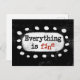 En söt typografisk design som säger "Allting är bra". Det är svart och röd text på en vit rektangel med roliga, lekfulla vita prickar runt omkring, allt på en svart bakgrund.