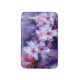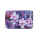 Söt vita Blommar av mandel i skarp kontrast mot en lila grumlig bakgrund.