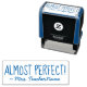 Den här inspirerande gummikonstruktionen i frimärke innehåller det positiva budskapet "ALMOST PERFEKT!" och en anpassningsbar lärare i namn. Den skulle kunna användas av en skollärare, lärare, instruktör eller lärare när de markerar uppdrag för att visa att student har gjort bra ifrån sig.