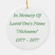 Kom ihåg dina kära med dessa vackra prydnadsföremål. Lägg till din kära namn, ditt smeknamn och din födsel och död, eller använda dem att erkänna familjemedlemmar och älskade djur som fortfarande lever. Helt anpassade!