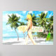 Aloha! Dream Ligcape med en tjej som bjuder oss att surfa och ha roligt, i fullt. Teckning skapat med datorbilden 3d 2d.