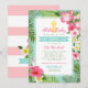 Denna livfulla tropiska bebishower luau-inbjudan har en djärv "Aloha, Baby" -stil bredvid en ljusgul ananas mot en fräsch akvafärgad bakgrund. Ett djärvt tealband visar texten "Baby Shower Luau" för en festlig hawaiiansk festkänsla. Frodiga hibiskusblommor, plumeria och palmkvistar ramar in designen i hetrosa, gul och vit. Ett koordinerande rosa och vitt randigt bakstycke kompletterar den dubbelsidiga designen. All formulering är helt anpassningsbar för din fest.