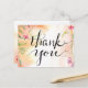 Soluppgång i färg med en tvättat vattenfärg och friheter blommar runt en kalligrafi "tack" för att uttrycka tacksamhet. Fungerar bra som tackkort för ett tropiskt bröllop eller hawaiiskt tema.