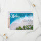 Beach-destinationsbröllop sparar datumkorten med ett flygfoto av en strand i en "alabisk" design, anpassad med namn, bröllop-datum och namn på den hawaiiska ö du är gifta sig på. Baksidan av den här Hawaii-stranden som sparar datumet är ett av dina favoritfoton på förlovningen.