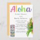 Ni kommer att kärlek detta hawaiiska tema tiki statue, paradisfåglar med färgat mönster på baksidan av inbjudningarna.