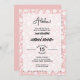 Chic tropiska vita hibiscus-utskrifter på baby rosa-bakgrunden innehåller dina party-uppgifter i chic - perfekt för ANY AGE födelsedagsfest inbjudan! DET FINNS MYCKET FÄRG! MATCHING-objekt i vår butik.
