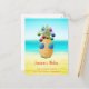 En tropisk ananas tar på sig julen med färgad och blåa coolor mot en strandsideskonstruktion. Anpassa med ditt eget budskap och med namn i familjen.