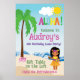 Den tropiska stranden Luau-födelsedagsfesten poster, med söt näsflicka, handflatan träd och strandscen. Det här tecknet konverteras enkelt till storlekarna 20 x 30 eller 24 x 36, vilket gör det enkelt att anpassa texten. Fyll i temapartyet med det här anpassade tecknet, underbara för barn eller vuxnor.