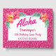Har en ljus tropisk "Aloha"- och hibiscus-blommor och en shock rosa faux glitter-bakgrund. Personlig med din information. Du kan redigera eller radera text efter behov. Perfekt för alla typer av händelser! Matchning av party-leveranser och inbjudningar i min butik. Design ©2019 Rosalind Moore, Cherry Lane Design.