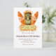 En tikimask sittr med orange surfbrädor, dekorerad med tropiska hibiskusblommor och ordet Aloha. Aloha Tiki Mask-inbjudan är en rolig inbjudan för alla tillfällen för en sommar-/strandfest, privat eller affärsmässig, som hålls på Hawaii eller för hawaiianer. Vänligen anpassa den med din egen text enligt tillfälle eller klicka på "Anpassa"-knappen för att gå till designverktyget där du kan lägga till text, ändra typsnitt, textstorlek, textfärg, textpositionering, ändra kortstorlek med mera.