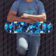 Denna moderna alfatavtryckning består av en elektrisk blandning av geometriska former och hibiscus-blommor. Dessa utformar komen i flera färgrutor.
